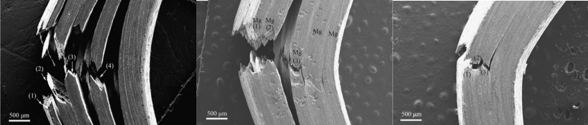 隨著科學(xué)技術(shù)的發(fā)展和進(jìn)步,對(duì)材料的性能要求也越來(lái)越高,傳統(tǒng)材料由于結(jié)構(gòu)單一,綜合性能不夠突出,難以滿(mǎn)足對(duì)多性能耦合要求的服役環(huán)境。但是由多種不同性能的材料通過(guò)物理或者化學(xué)方法結(jié)合制備而成的復(fù)合材料,既能保持各組元材料獨(dú)特的性能,也能取長(zhǎng)補(bǔ)短,產(chǎn)生協(xié)同效應(yīng),使新制備的復(fù)合材料綜合性能遠(yuǎn)優(yōu)于各組員材料的性能,從而滿(mǎn)足不同復(fù)雜工況的要求。自然界中也有很多類(lèi)似的結(jié)構(gòu),軟/硬相結(jié)合的多層結(jié)構(gòu)可以提高其強(qiáng)度硬度的同時(shí)也能有很好的韌性。下圖為貝類(lèi)外殼的層狀結(jié)構(gòu)。