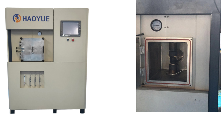 圖1上海皓越生產(chǎn)的熱壓燒結(jié)爐(左)外觀(右)爐內(nèi)構(gòu)造